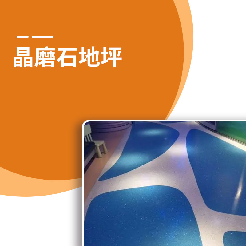 晶磨石地坪(水磨石)采用色彩繽紛的天然卵石、五彩石、大理石、貝殼、玉石等天然骨料,可廣泛用于商場(chǎng)、展廳走廊、高級(jí)娛樂(lè)場(chǎng)所、博覽會(huì)館、商務(wù)會(huì)所等其他一些需要美觀、耐磨地坪的場(chǎng)所。