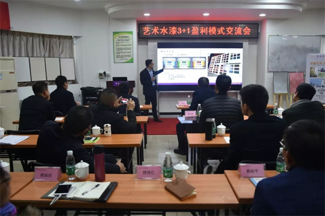 隨后,藝術(shù)涂料服務(wù)部將部長給大家闡述了《梵蒂斯藝術(shù)涂料產(chǎn)品介紹及推廣》課題,看著個(gè)性十足、藝術(shù)質(zhì)感的樣板,在座各位興致滿滿,不停地向蔣部長提問,甚至一度推遲了會(huì)議的時(shí)間。