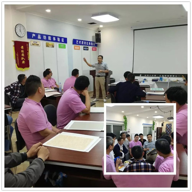 現(xiàn)今,嘉麗士藝術(shù)水漆還推出了“3+1盈利模式”,助力經(jīng)銷商迎戰(zhàn)市場,而其中的“藝術(shù)漆盈利模式”更是站在了時代的風(fēng)口上,本次培訓(xùn)主要圍繞嘉麗士藝術(shù)漆展開探討,從產(chǎn)品的性能、樣板制作到上墻施工,均讓經(jīng)銷商們親身體驗,以求達(dá)到最好的培訓(xùn)效果。