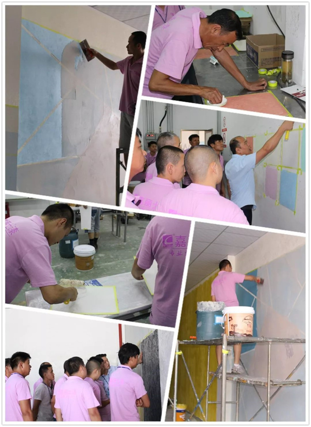 本次培訓,嘉麗士針對各個系列的藝術漆產(chǎn)品作深入的施工培訓,引導經(jīng)銷商正確認識我司產(chǎn)品及施工方法。他們不僅制作了各系列藝術漆效果的小樣板,還直接上墻施工,真正的體驗產(chǎn)品在墻面上的效果呈現(xiàn)。