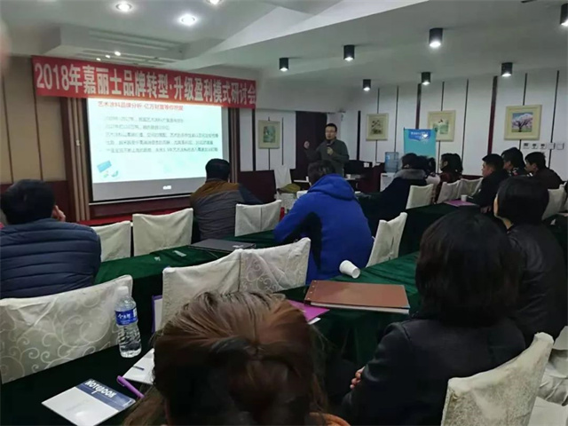 2018年11月25日,嘉麗士藝術(shù)水漆于吉林四平召開品牌轉(zhuǎn)型·升級盈利模式研討會,來自東北三省的30位重點客戶齊聚吉林四平百合園酒店,嘉麗士事業(yè)部銷售總監(jiān)焦坤朋、東北大區(qū)部長朱瑩等人出席該會議,共同商討嘉麗士品牌的發(fā)展計劃!