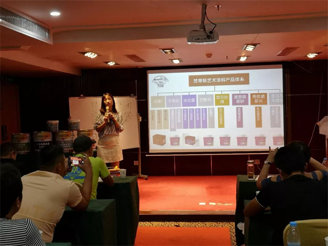 在萬眾期待中,陳秋汝總監(jiān)向大家進行了梵蒂斯藝術(shù)漆的產(chǎn)品介紹,并就施工要求、涂裝操作、門店運營技巧、色彩搭配等方面知識,進行了全方位的指導(dǎo),給學(xué)員帶來了實際性幫助。