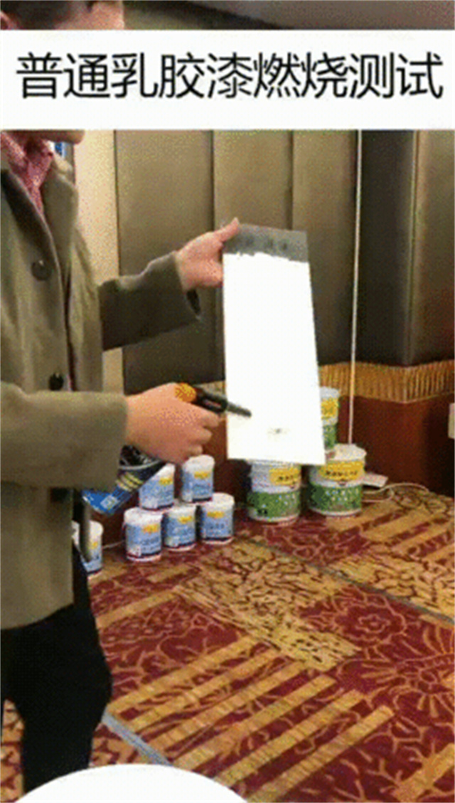 本次上市的嘉麗士天然礦物無機(jī)涂料,尤以抗菌與防火特性突出?,F(xiàn)場(chǎng)使用高溫噴槍,對(duì)嘉麗士天然礦物無機(jī)涂料與普通乳膠漆進(jìn)行測(cè)試,事實(shí)證明對(duì)無機(jī)涂料漆膜無影響,而普通乳膠漆已經(jīng)燃燒發(fā)黑粉化。