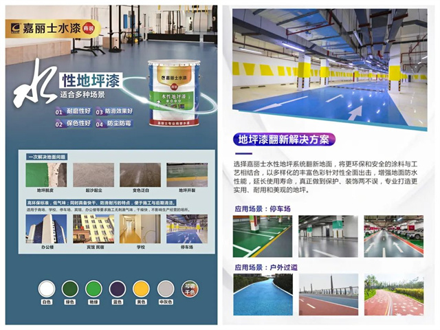 選擇嘉麗士水性地坪漆系統(tǒng)翻新地面,將環(huán)保和安全的涂料與工藝相結合,以多樣化的豐富色彩針對性全面出擊,增強地面防水功能,延長使用壽命,真正做到保護、裝飾兩不誤,專業(yè)打造更實用、耐用和美觀的地坪。