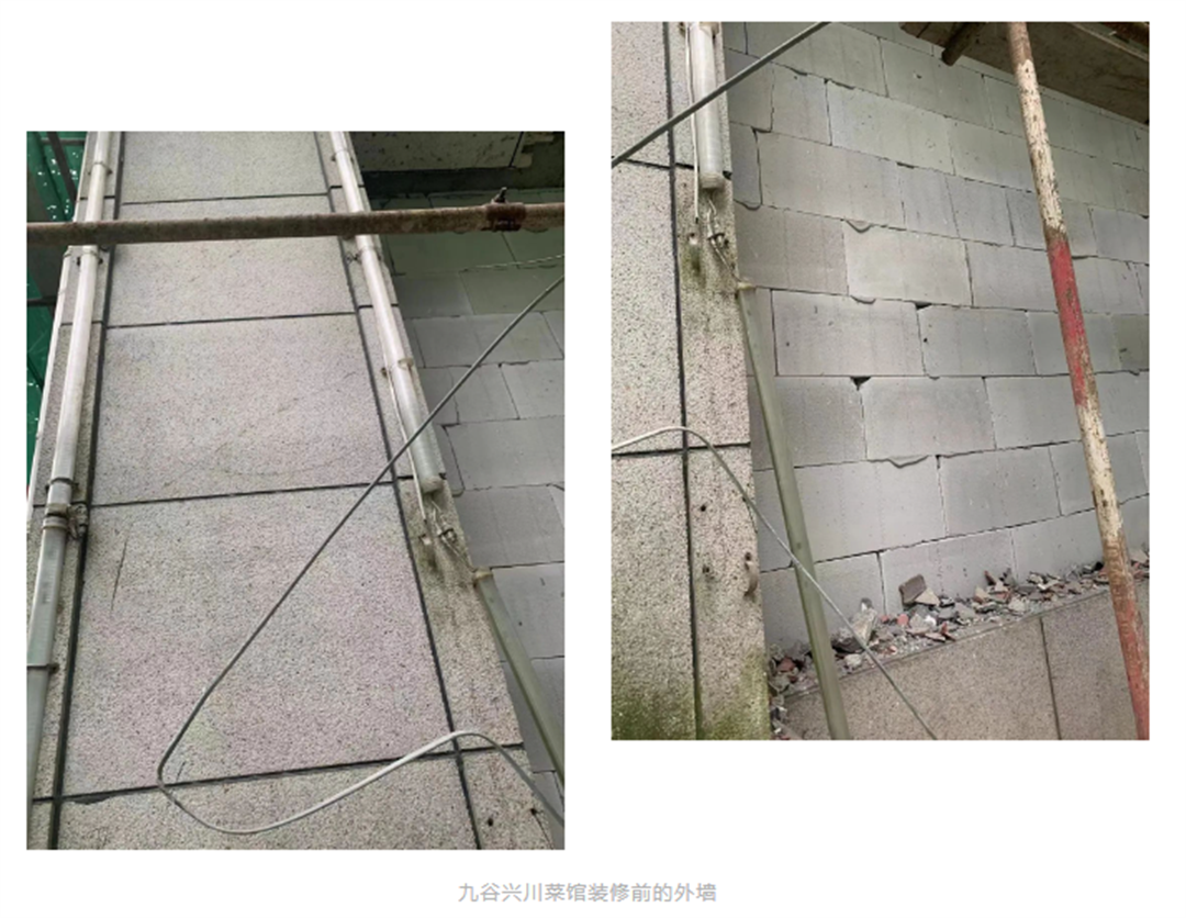 九谷興川菜是四川成都興熙北餐飲集團(tuán)旗下的高端餐飲品牌,位于華美東街186號(hào),翻新前是一家KTV,外墻采用的是真石漆和干掛石材,在歲月侵蝕下已經(jīng)非常陳舊,到處可見(jiàn)凌亂及污漬。
